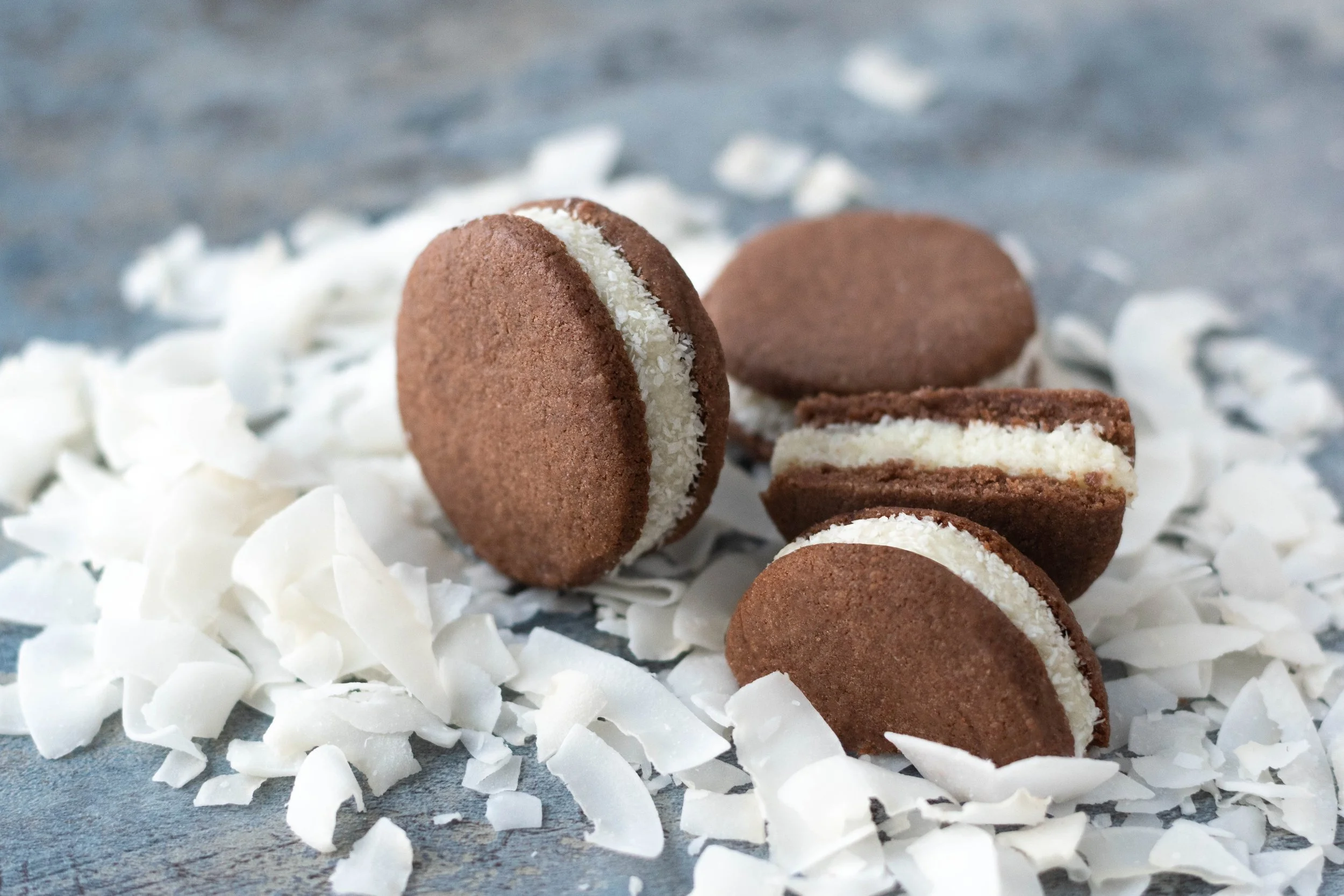 Слепени шоколадови бисквитки с кокосов ганаш